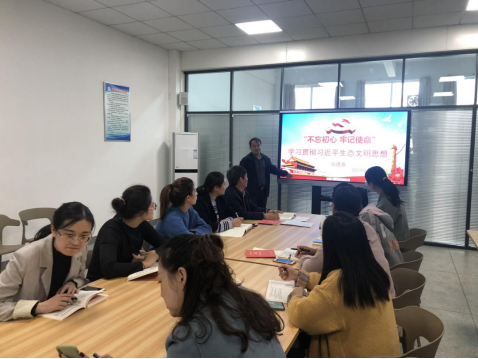 10月29日下午,星空彩票官方苹果在综合楼二楼会议室组织开展党课学习,星空彩票官方苹果主任张德喜以“不忘牢记使命,学习贯彻落实习近平生态文明思想”为题为全体老师上了一堂精彩党课。